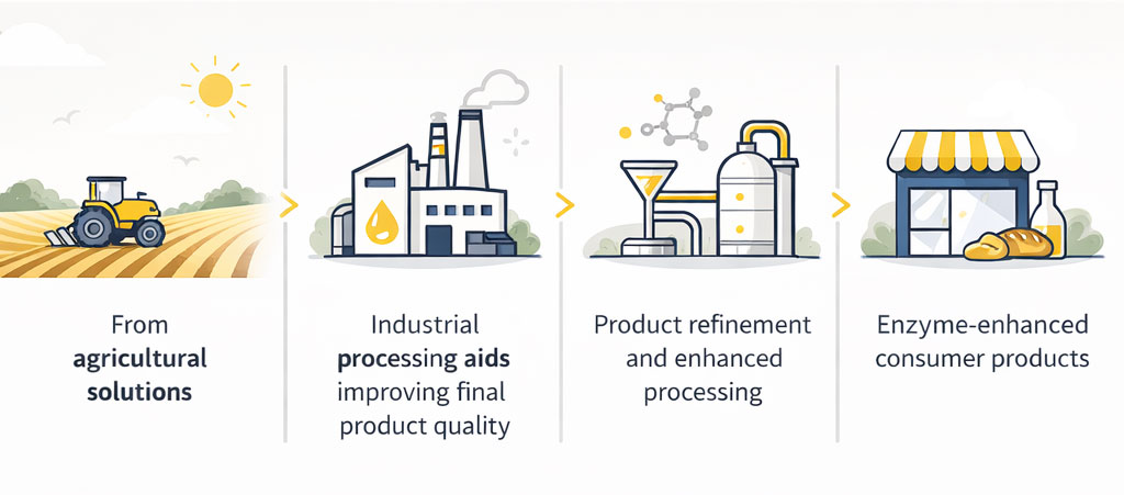 From flour improvement enzymes that perfect crust colour to bioenergy enzymes that boost yield, we provide tailor-made blends backed by deep biochemical insight and real-world performance data.